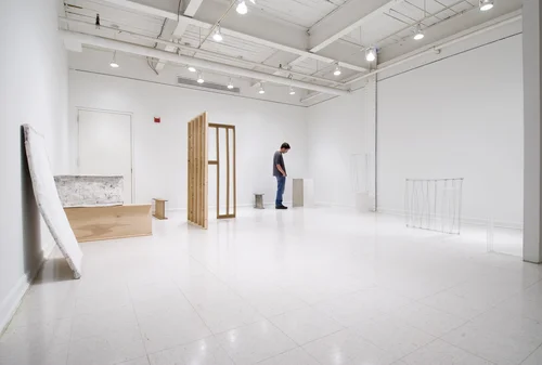 In the work To Scale, I have recreated the dimensions of the 2nd floor galley at one-half and one-tenth inch scales to punctuate the physical and conceptual constructs of the space. The work I have installed is an obvious construction. It is situated in a room, that despite its fixed appearance, is also a construction. Spectators are invited to view a smaller version of the space that they are simultaneously walking through and consider their relationship to the scale of the constructs.
